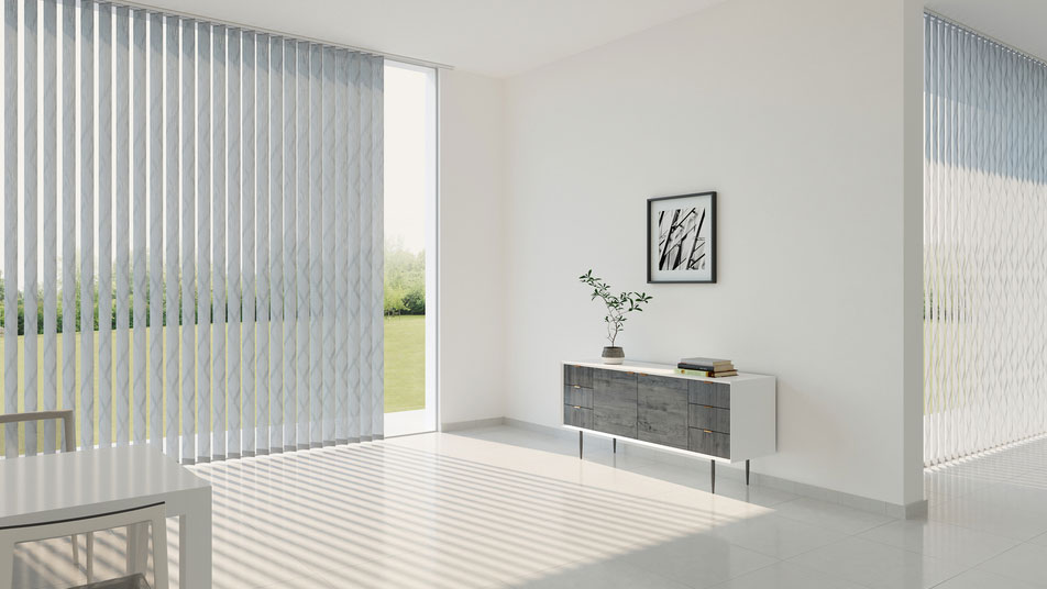 Schützen Sie sich vor erhitzten oder ausgekühlten Räumen. Wabenplissees helfen Ihnen, Energie zu sparen. Und noch bei vielem mehr. | Vertikal-Jalousien schützen Sie individuell und stufenlos vor Sonnenlicht und Einblicken. Über die wendbaren Lamellen modulieren Sie den Lichteinfall ganz nach Ihrem Bedarf. | ||