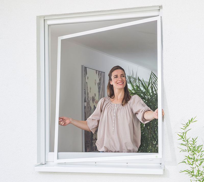 | Die Rahmen lassen sich einfach montieren, in den meisten Fällen ohne die Fenster zu beschädigen. Mit über 150 Varianten bieten wir für jede Einbausituation die passende Lösung, egal ob die Fenster aus Kunststoff, Aluminium oder Holz sind. | Der Insektenrollo wurde speziell für Dachfenster entwickelt. Es ist für den Einbau an schrägen Fenstern konzipiert und ermöglich somit das einfache Öffnen und Schließen der Fenster. Das Rollo kann durch wenige Handgriffe einfach zum Putzen der Fenster ausgehängt werden. | Die Insektenschutztüre als Drehrahmen ist ein bewährter Klassiker und wird in einer großen Vielfalt angeboten. Die Türen können optional um Türschließer, Bürstendämpfung, Katzen- oder Hundeklappen und kratzfestem Gewebe erweitert werden. | ||