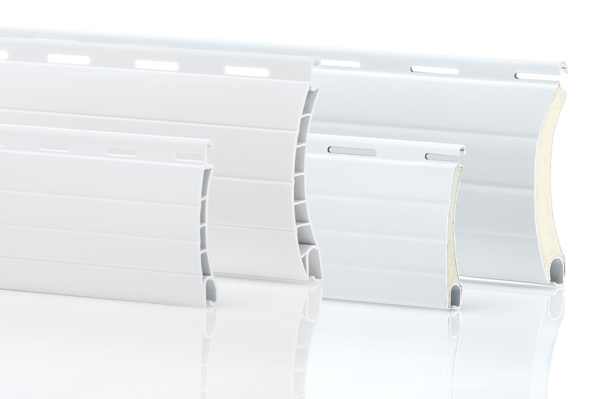 Wir verwenden Rolladenprofile und Rolladenpanzer aus Kunststoff oder Aluminium. Die Deckbreite und Nenndicke der Lamellen ist abhängig vom vorhandenen Rollraum.