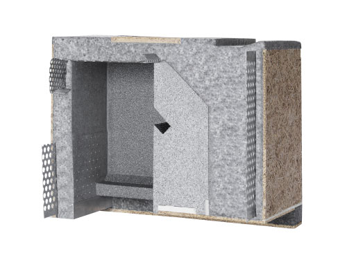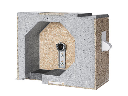 Der raumseitig geschlossene MONO NE Plus Rollladenkasten besteht aus stabilen, mit hohem Raumgewicht geschäumten EPS(Styropor) zum Einbau in der Rohbauphase.