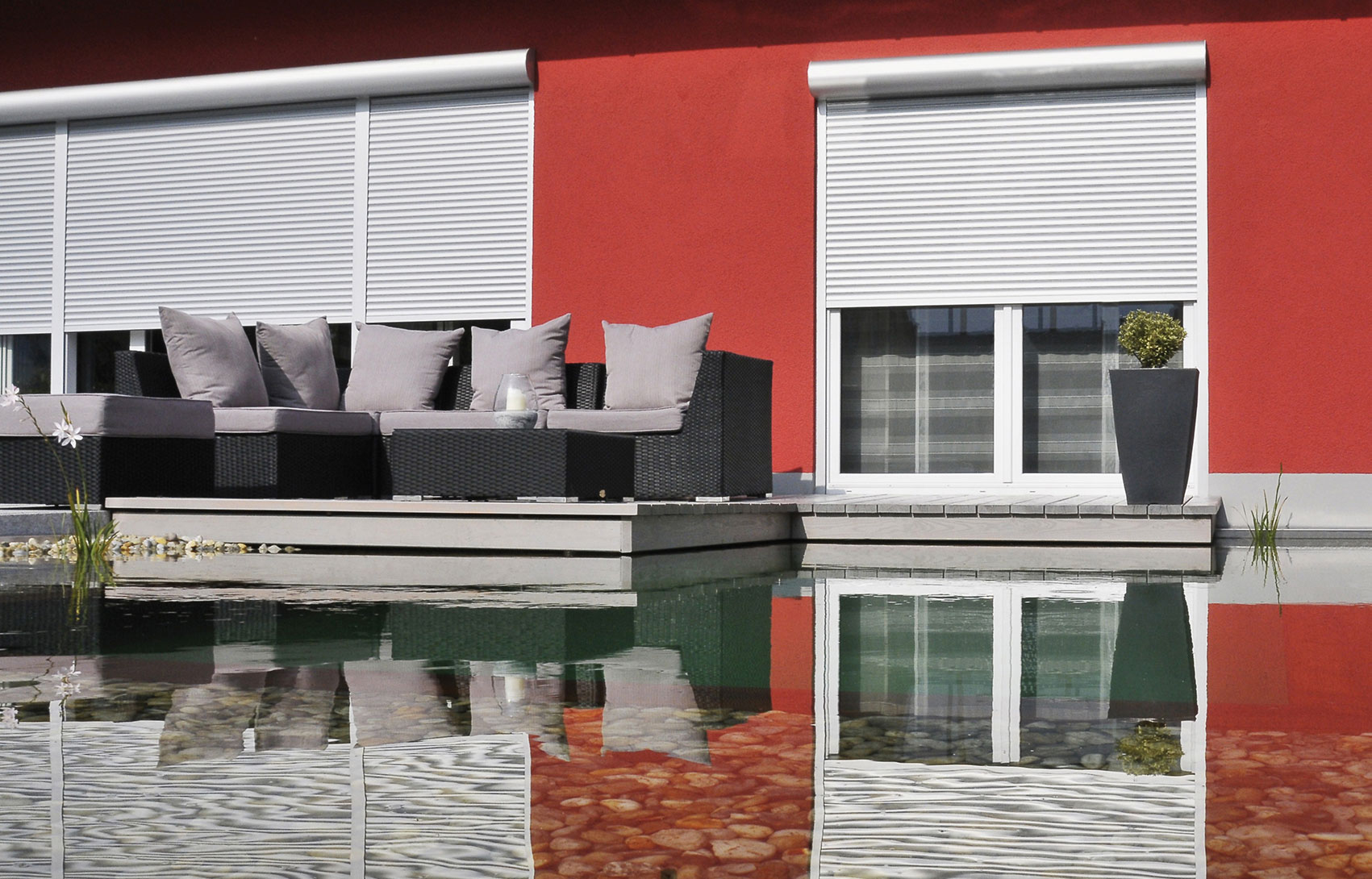 Dekorativ, elegant und ausgesprochen funktional präsentieren sich ALUKON-Rolladensysteme. Sie verleihen der Architektur Ihres Hauses das gewisse Etwas und bieten Annehmlichkeiten wie Sicht-, Sonnen-, Wetter-, Wärmeschutz und Sicherheit.